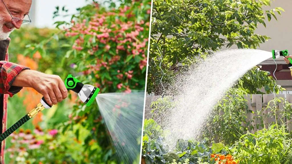 Build quality is another strong point. The hose features a high-strength metal connector that locks securely and has shown no leaks even after dozens of uses. Its durable triple-layer latex core enhances flexibility and longevity, while the included 10-pattern spray nozzle adds versatility for everything from delicate misting to high-pressure cleaning — all with a comfortable, slip-resistant grip.